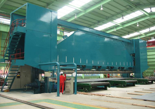 船用三輥對稱式卷板機結構型式為三輥對稱式,上輥在兩下輥中央對稱位置作垂直升降運動,通過液壓缸內的液壓油作用于活塞桿而獲得,為液壓傳動;